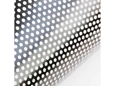 采用PVC层压技术,通过精准打孔和喷绘实现画面与透光结合,工艺包括孔径优化、黑色胶底处理及压敏粘胶设计。广泛适用于公交车、出租车车窗,商场、快餐店玻璃幕墙,会议室玻璃隔断应用场景。