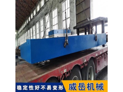 还有一种调整平台的土方法:调整平板前先检查各支点是否支实,检查支点不要有悬空的,用一根平直的尺子先放在铸铁平台对脚线位置,然后轻轻晃动的一端,尺子接触平板的支撑点在尺子的9分之2处就行。依次类推用同样的方法检测平板的4个角。如果是有3个以上支点,用同样的方法调整辅助支点,注意辅助支点的力度要比4个平板角的小一些。这样调整的铸铁平台基本就是平的了,再用框式水平仪或合像水平仪检测会很方便。河北威岳机械有限公司位于中国工量具生产基地——泊头市。公司始建于1968年,是原机械部量具定点生产厂,公司产品T型槽铸铁平台和铸铁试验平台广泛应用于机械、发动机的动力实验、设备调试,具有较好的平面稳定性和韧性,同时为了方便用户,可根据客户要求加工订做各种铸件、非标准量具地梁、T型槽铸铁地轨、十字槽铸铁平台、铸铁试验平台。