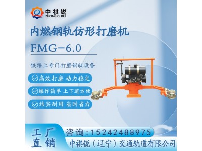 FMG-6.0内燃仿形打磨机是以6.8马力西班牙汽油机作为动力。通过传动系统带砂轮进行磨轨作业,以汽油机为动力(回转运动),传递给杯型砂轮使其产生回转运动,同时通过一个能转的手轮来调整砂轮的进给量,从而达到打磨钢轨的目的。