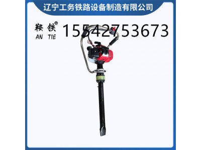 捣固镐采用汽油机与捣固棒直接连接的设计,主要由汽油机、减振装置、传动轴、振动体和手把组成。其工作原理为:汽油机经离合器、软轴带动偏心铁,产生振幅实现捣固作业。