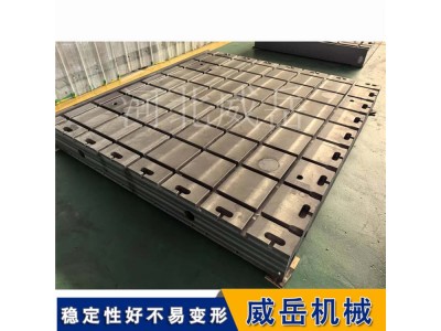 试验铁地板能成为电机性能测试的“稳定基础”,核心源于其材质与结构的科学设计,而安装基准的设计更是重中之重,需围绕“抗振、准、适配”三大核心要点展开。首先是材质选型与时效处理,电机测试中高频振动(50-2000Hz)与动态载荷(10-50kN)要求试验铁地板兼具高刚性与高阻尼,优先选用QT600球墨铸铁或HT350灰铸铁,抗拉强度≥300MPa、抗压强度≥900MPa,经550℃高温时效(保温4-6小时)+6个月自然时效处理,残余应力去除率≥90%,避免长期振动导致变形。某电机厂选用未经时效处理的普通铸铁地板,测试100kW电机时,因地板共振导致扭矩测试误差超±5%,更换合格试验铁地板后,误差降至±1%以内。