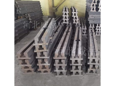 铸铁地轨--T型槽地轨主要用于大型设备的装配、试验、焊接和检验.这样不用做成大型的平台,地轨具体规格可根据需方图纸制作或双方商定生产加工。根据设备的固定点来设计、拼接成铸梁平台。即节省了材料成本,又可以占用很小的空间,可谓是性价比很高。完全可以替代大型装配平台、焊接平板、装配平板等,能够满足冶金设备、建材设备、矿山设备、造船等大型设备制造、组装、装配等工作。高强度铸铁HT200-300工作面硬度为HB170-240经过两次人工处理(人工退火600度-700度和自然时效2-3年)使该产品的精度稳定,耐磨性能好。铸铁地轨长度规格可以做成500mm4000mm以内的各种规格。外形尺寸、每米长度重量要根据客户要求承重来确定,威岳公司免费为客户设计图纸、提供前期服务!多年来,我公司以合理的价格、高品质的产品、周到的售后服务赢得了市场的信誉。同时为了方便用户,可根据客户要求加工订做各种铸件、非标准量具地梁、T型槽铸铁地轨、十字槽铸铁平台、铸铁试验平台等产品。