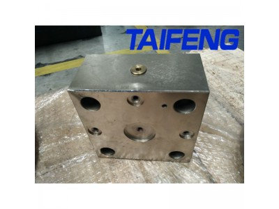控制盖板用来将插装阀固定在阀块块体内,并可在盖板内设置先导控制通道。它和安装在控制盖板上的先导阀或插装于盖板内的先导控制元件、节流螺塞等组成先导液阻网络,对座阀级进行设定的控制,并用于调整和影响阀芯开关时间。控制盖板的控制通道还和阀块块体内的主通道和控制通道连接。根据需要,控制盖板还经常设置行程调节和检测机构。